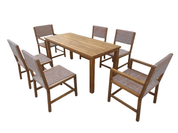 This dining table is ideal for small and medium-sized dining room , designed with solid structure , made entirely from 100 % oak imported from USA termite treated and warping . dining table sits 4 people with 4 qs chair cushions made of leather industry